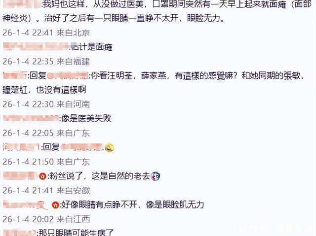 网友对这种现象开始了激烈讨论,有人说这是“整容后遗症”,有人说这只是自然衰老导致的眼部松弛, 还有人好奇是不是身体有了什么问题?毕竟已经58岁了,有一些网友非常分析的比较靠谱,可能是有一些小状况发生。